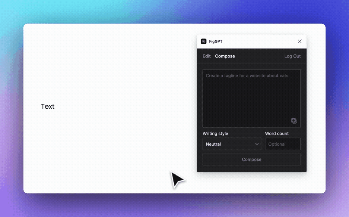 Select the text layer, open the FigGPT plugin, and click “Compose.” Now you can write a prompt like: